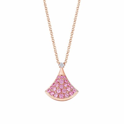 首页 > 珠宝首饰 > 项链吊坠 > 【包邮包税】BVLGARI/宝格丽 DIVAS'DREAM经典款钻石18K金玫瑰金密镶粉红蓝宝石 小扇子项链 355889