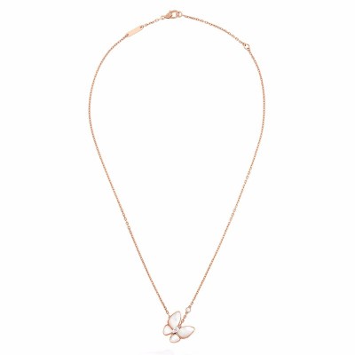 【包邮包税】Van Cleef & Arpels/梵克雅宝 经典款Deux Papillons 女士白色珍珠贝母两只蝴蝶项链 VCARO8FO00