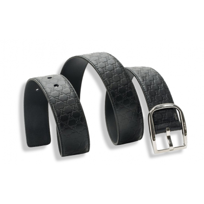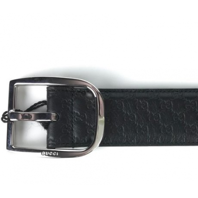 GUCCI/古驰 男士腰带经典 LOGO 压纹 银色针扣 黑色 皮质4cm宽 有细微划痕 防尘袋或品牌礼盒随机配发