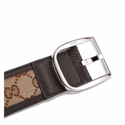 GUCCI/古驰 男士腰带经典 LOGO 压纹 银色针扣 棕色 皮质4cm宽 有细微划痕 防尘袋或品牌礼盒随机配发