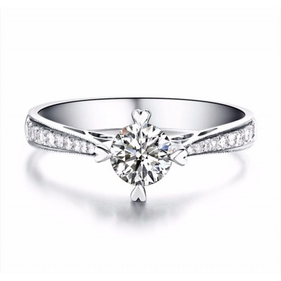 ZOCAI/佐卡伊 情定威尼斯 白18k金四爪钻戒女求婚结婚钻戒婚戒 定制