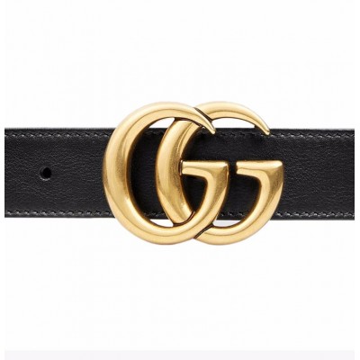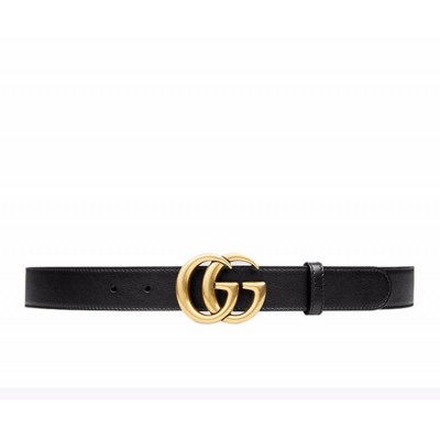 【七夕情人节好礼 男女同款】GUCCI/古驰 【20春夏新款 明星同款】男女同款黑色皮革金色双G搭扣商务休闲腰带皮带 414516-AP00T-1000